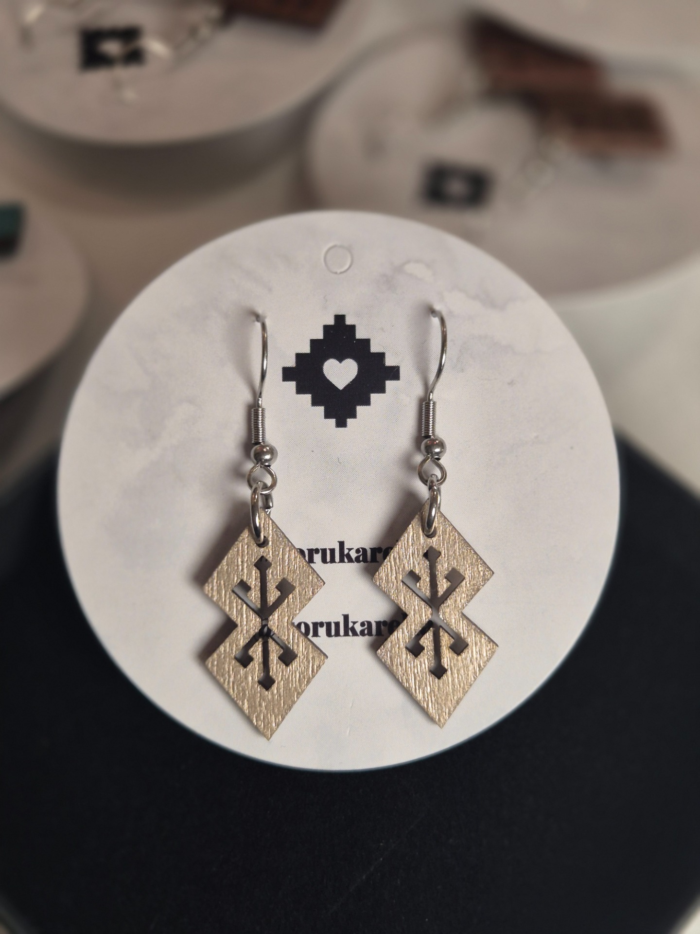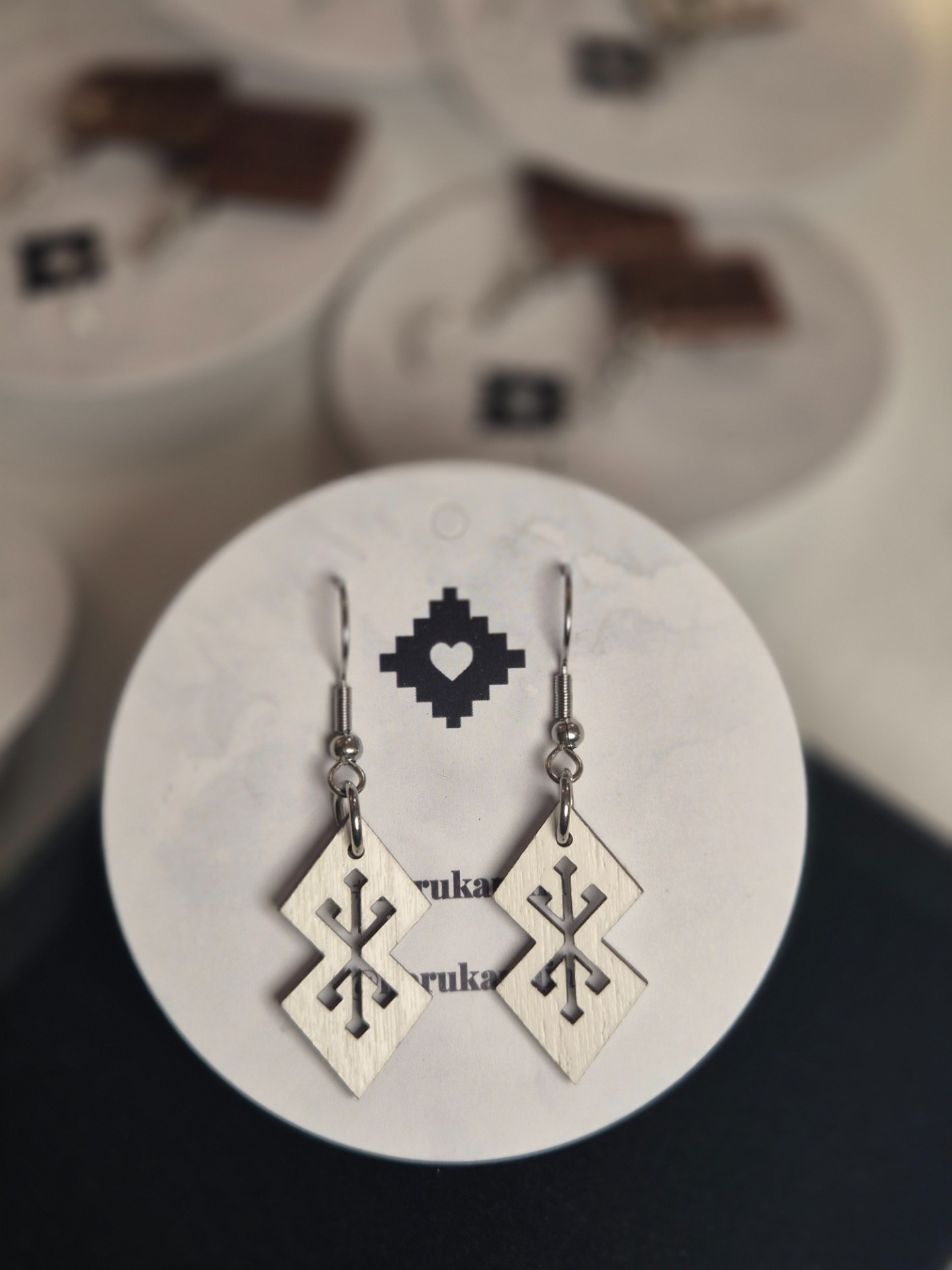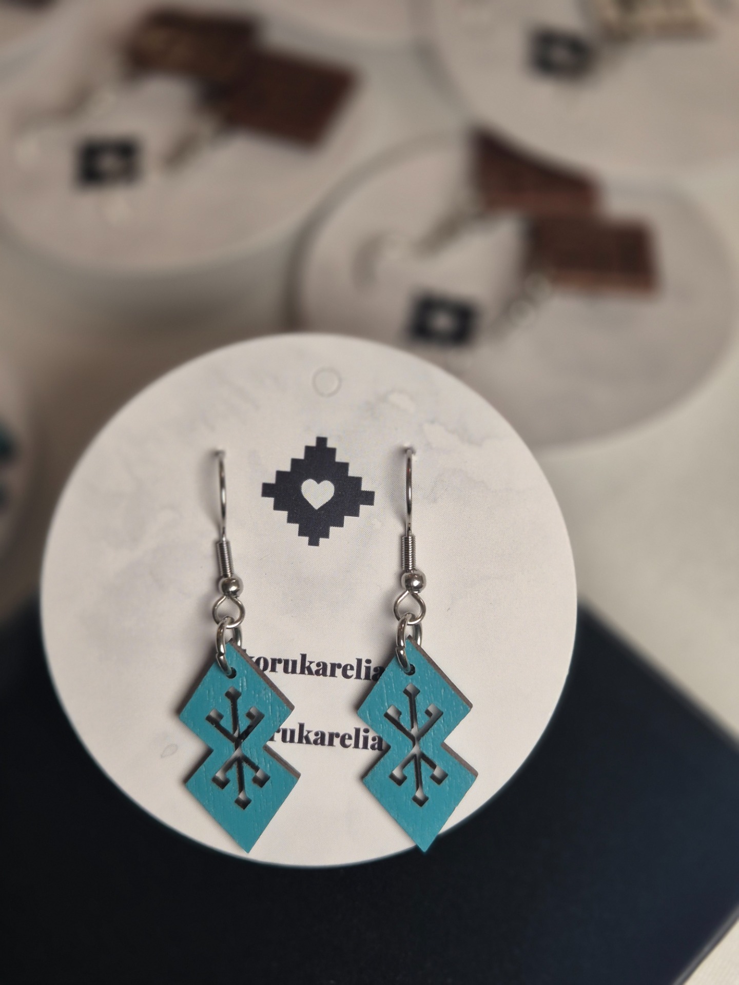 Ainikki on saanut inspiraationsa perknteisistä käsityömuodoista ja se on kaunis pieni korvakoru. Pikselimäinen yksinkertainen muotokieli uudistaa perinteikästä designia moderniksi.