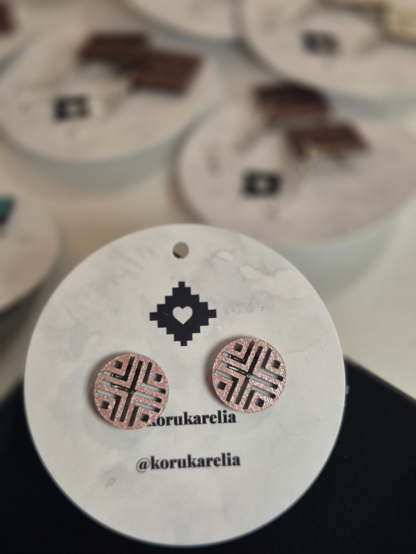 Melutar on saanut inspiraationsa perinteisestä punapoiminnasta ja se on kaunis pieni nappikorvis. Pikselimäinen muotokieli uudistaa perinteikästä designia moderniksi.
