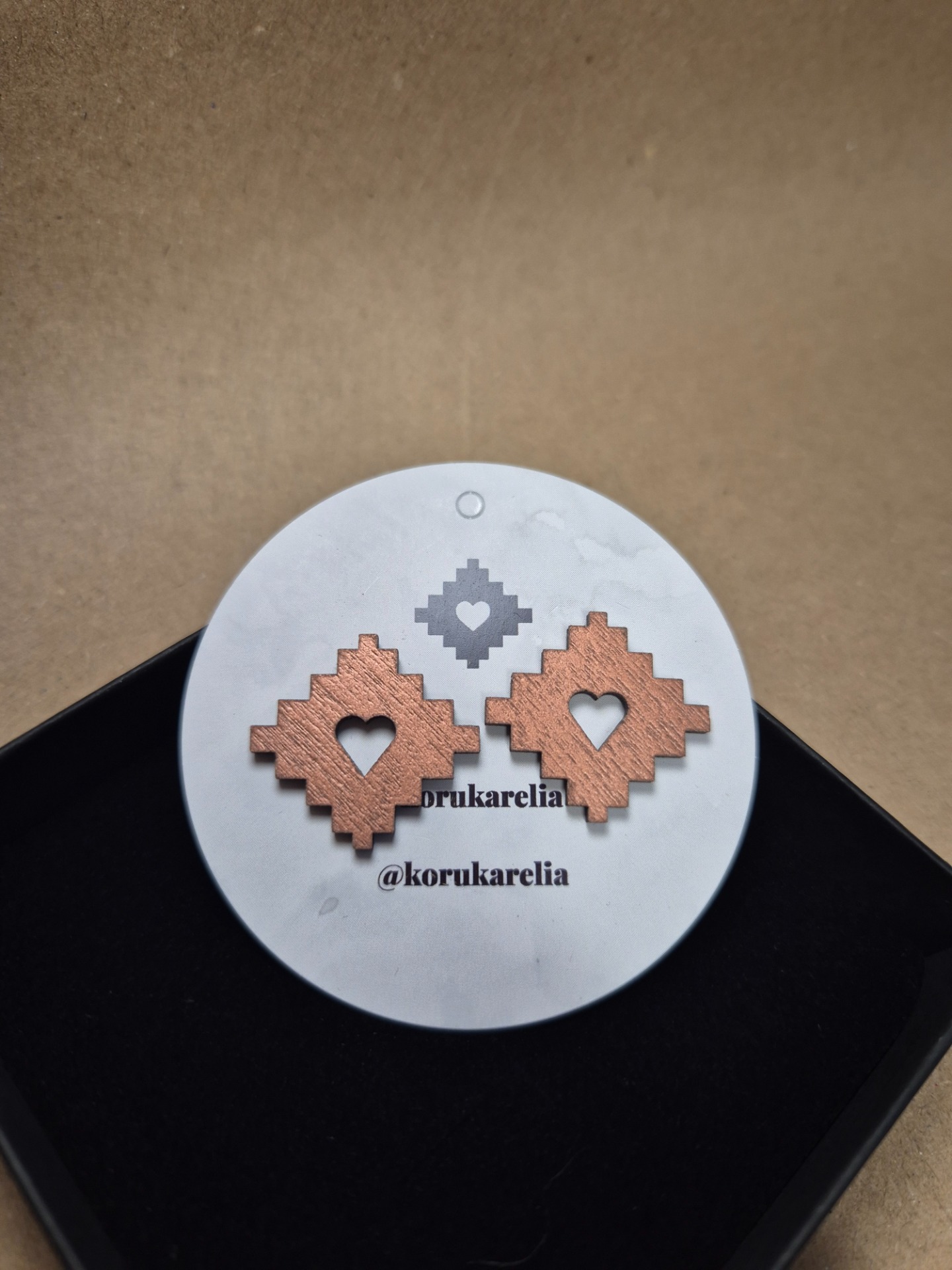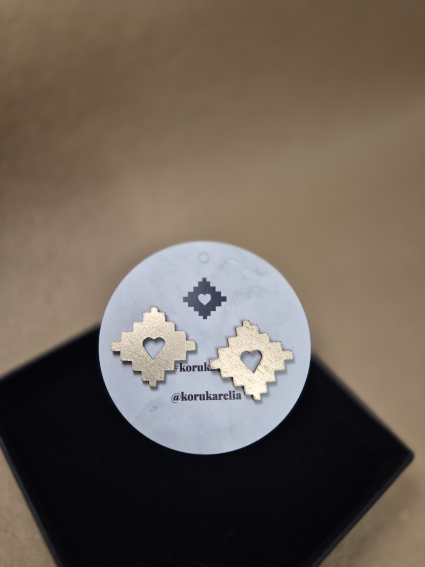 Mimerkki-nappi on räiskyvän värikäs käsinmaalattu nappikorvis ja moderni puukoru selkeällä muotoilulla ja saanut inspiraationsa perinteisistä kirjontamalleista. Mimerkki on Koru Karelian logokorvis ja pikselimäinen muotokieli uudistaa perinteikästä designia moderniksi.