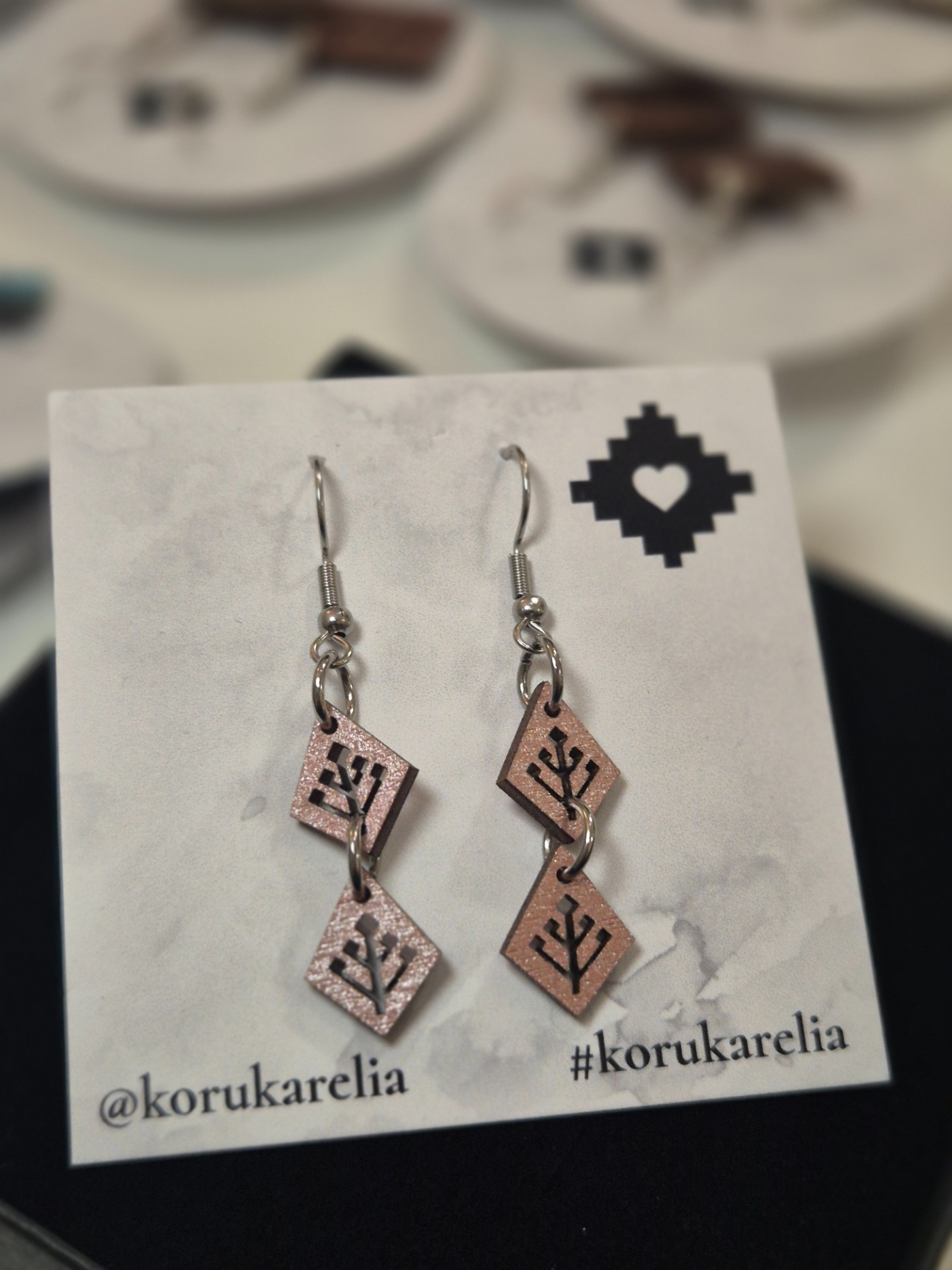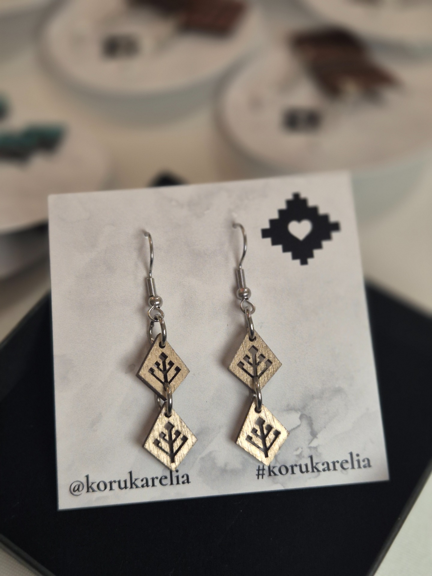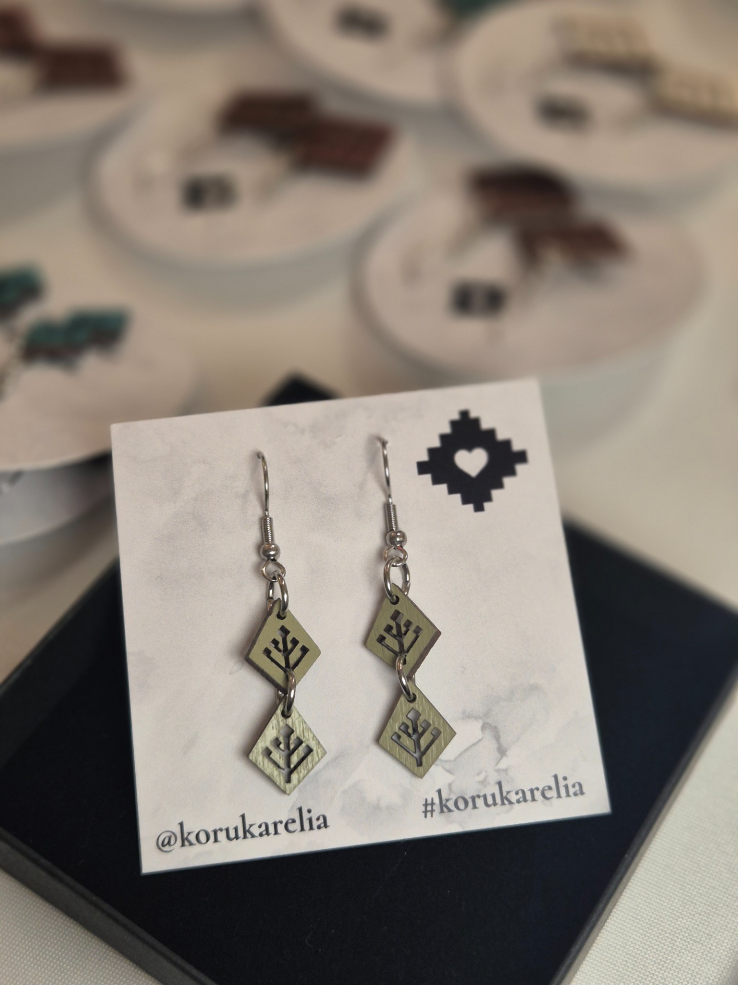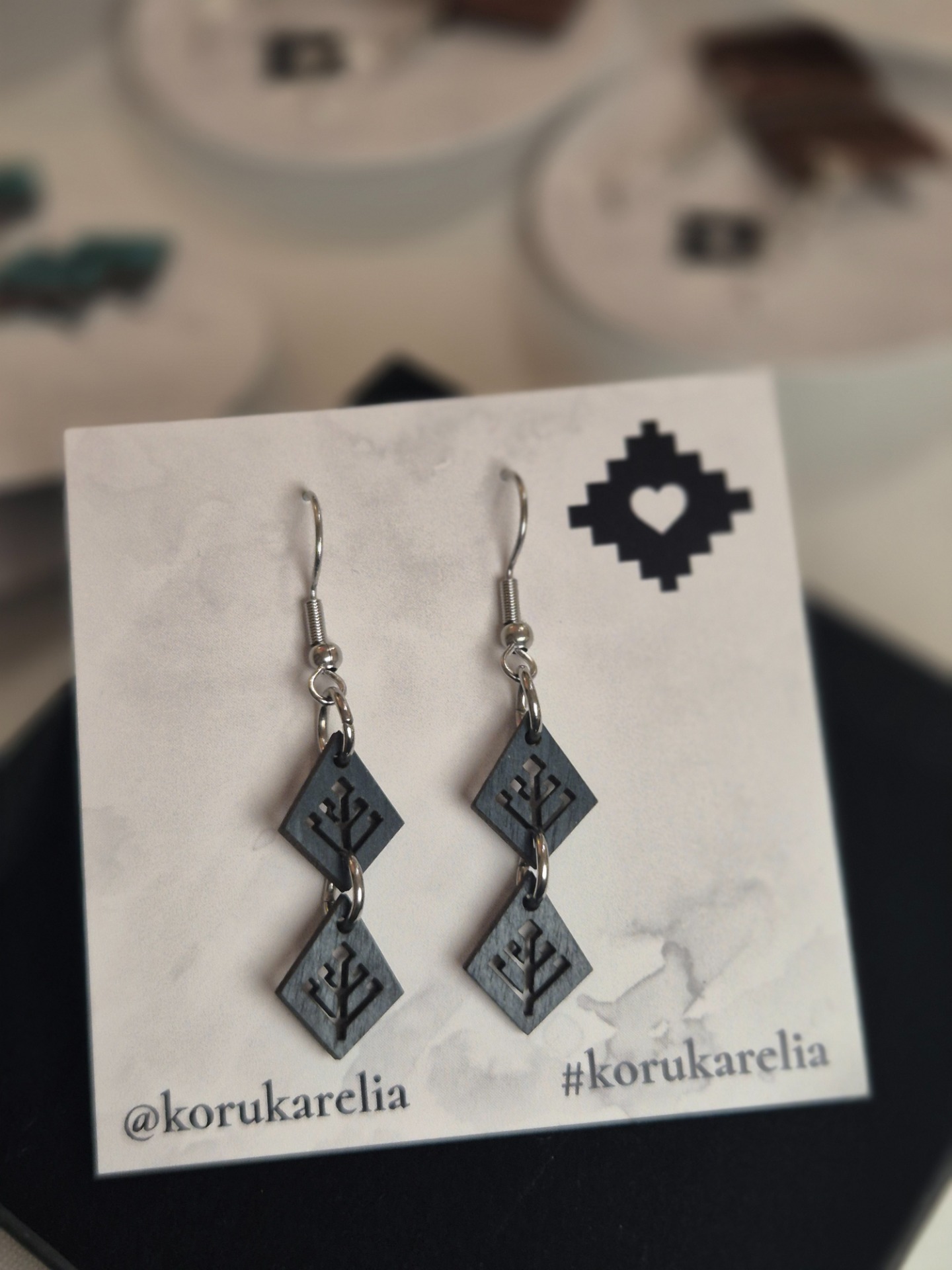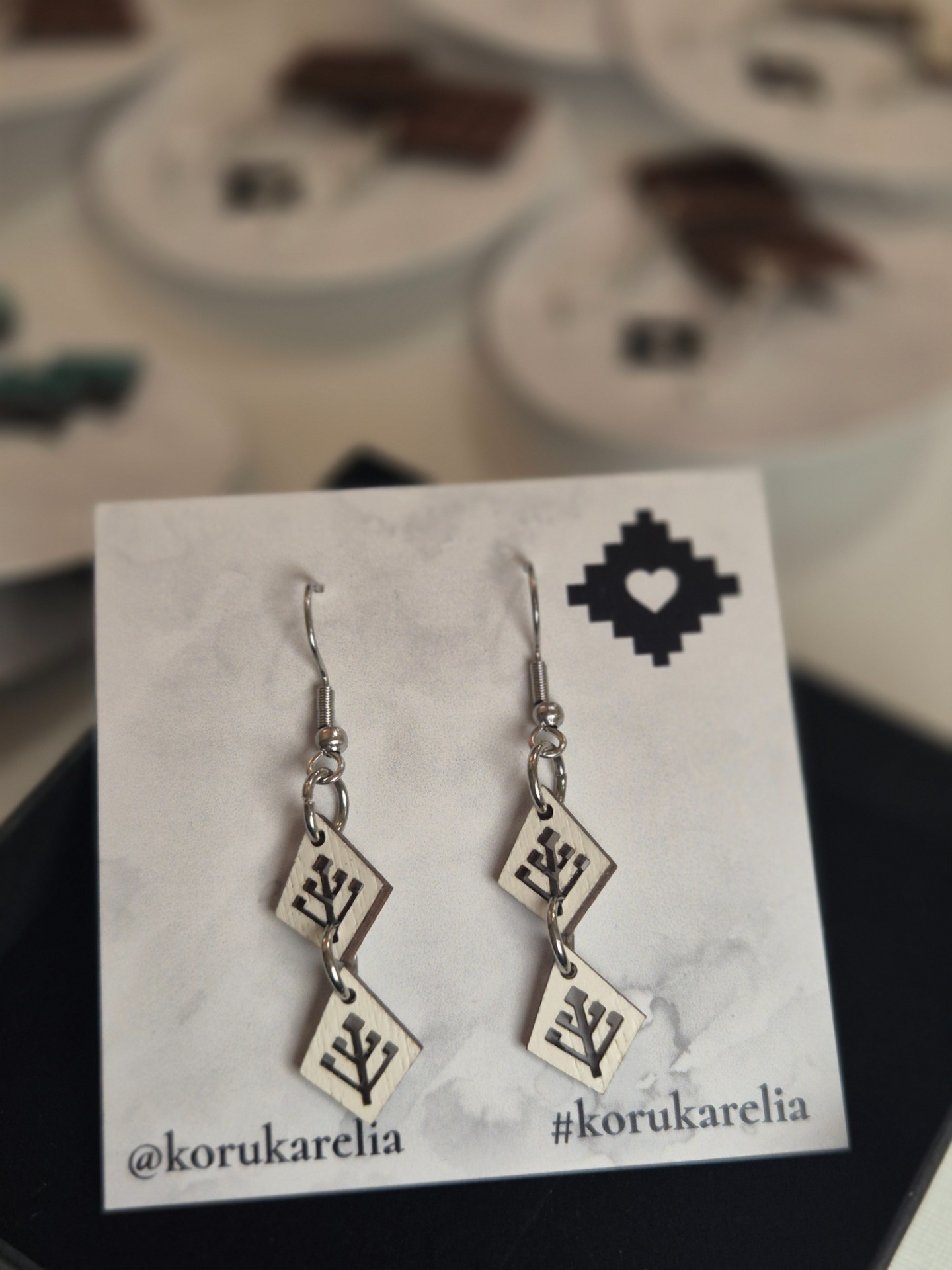 Pikku Varpu tupla on saanut inspiraationsa perinteisistä ristipistomalleista ja se on kaunis todella siro korvakoru. Pikselimäinen muotokieli uudistaa perinteikästä designia moderniksi.