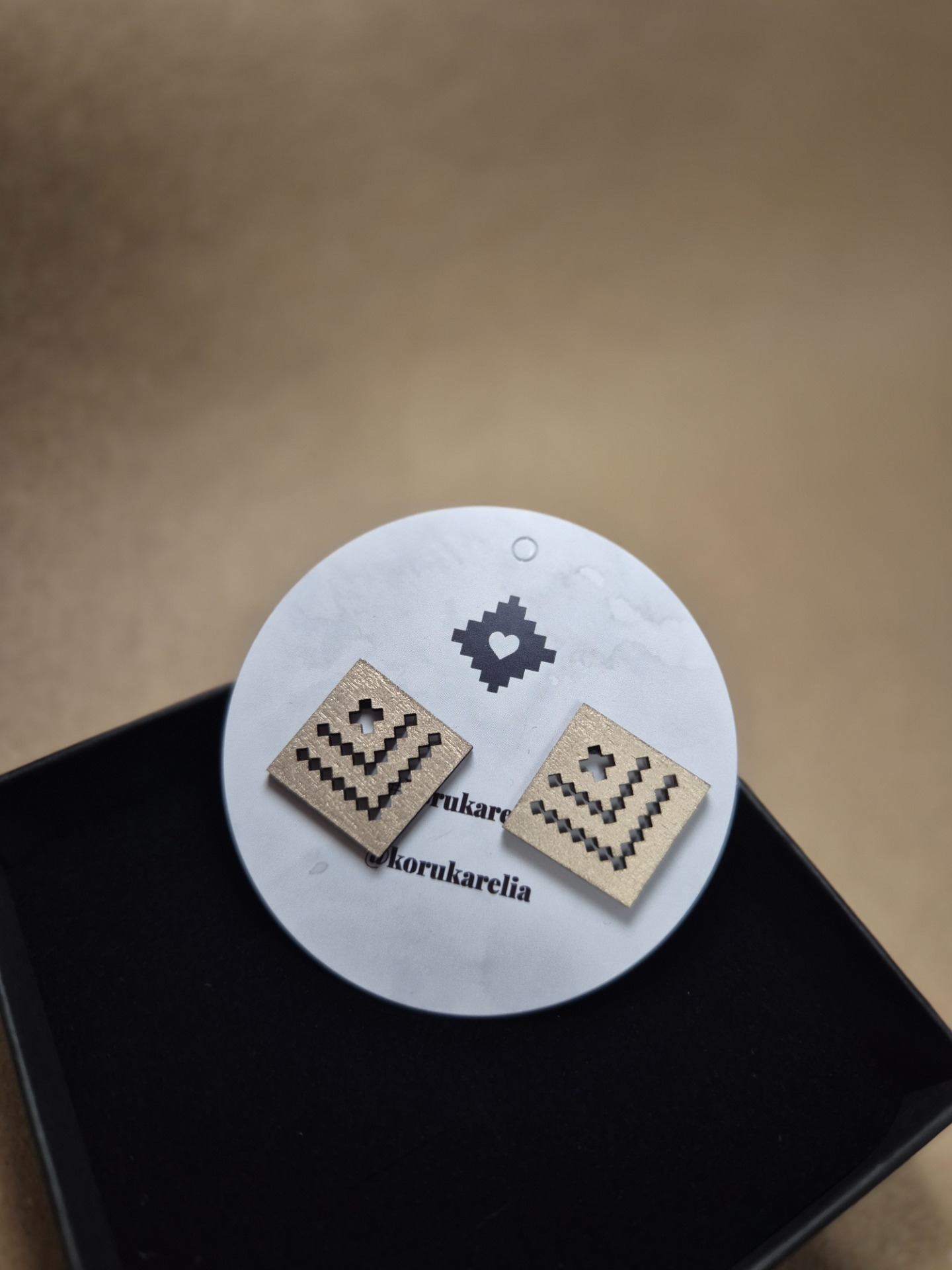 Piltikkä-nappi on moderni puukoru selkeällä muotoilulla ja saanut inspiraationsa perinteisistä kirjontamalleista. Pikselimäinen muotokieli uudistaa perinteikästä designia moderniksi. Värikäs korvis on käsinmaalattu ja niitä valmistetaan vain muutama pari.