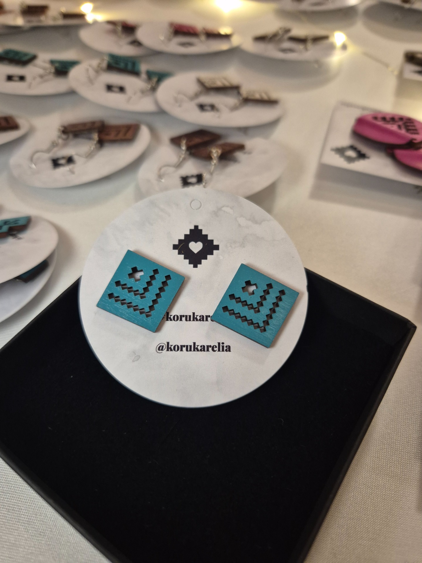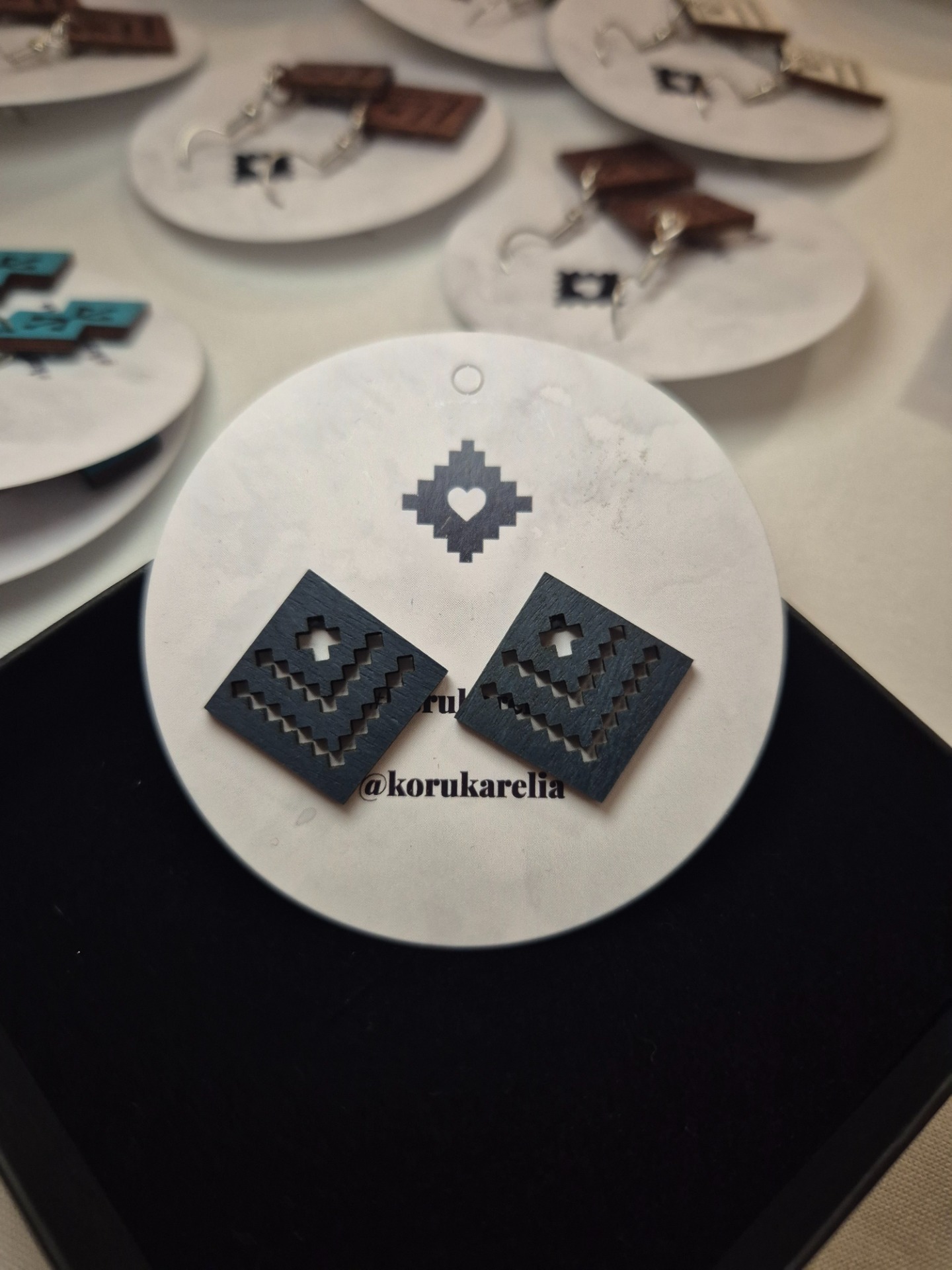 Piltikkä-nappi on moderni puukoru selkeällä muotoilulla ja saanut inspiraationsa perinteisistä kirjontamalleista. Pikselimäinen muotokieli uudistaa perinteikästä designia moderniksi. Värikäs korvis on käsinmaalattu ja niitä valmistetaan vain muutama pari.